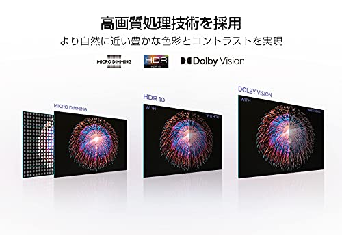 | 付属品 | 標準リモコン、リモコン用乾電池、電源コード1本(1500mm)、取扱説明書/かんたんガイド/保証書、スタンド本体及びネジ一式/転倒落下防止用部品一式/AV端子変換アダプター/ケーブル結束用クランプ2個 ※アンテナケーブルは同梱しておりません |