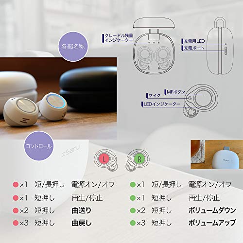 | 付属品 | USB Type-C 充電ケーブル 充電クレードル シリコンイヤーピース(S/M/Lサイズ)各1セット ※Mサイズはイヤホンに装着済みです。 取扱説明書兼保証書 |